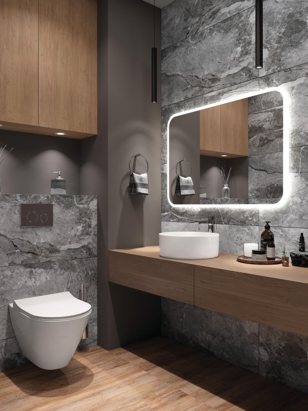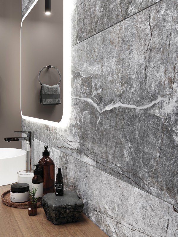 Керамогранит Energy — это имитация серого мрамора с контрастными прожилками. Дизайн оживает и становится объёмным благодаря рельефу на поверхности. Игру бликов усиливает шугар-эффект на поверхности плитки — специальный мерцающий материал с текстурой сахара.