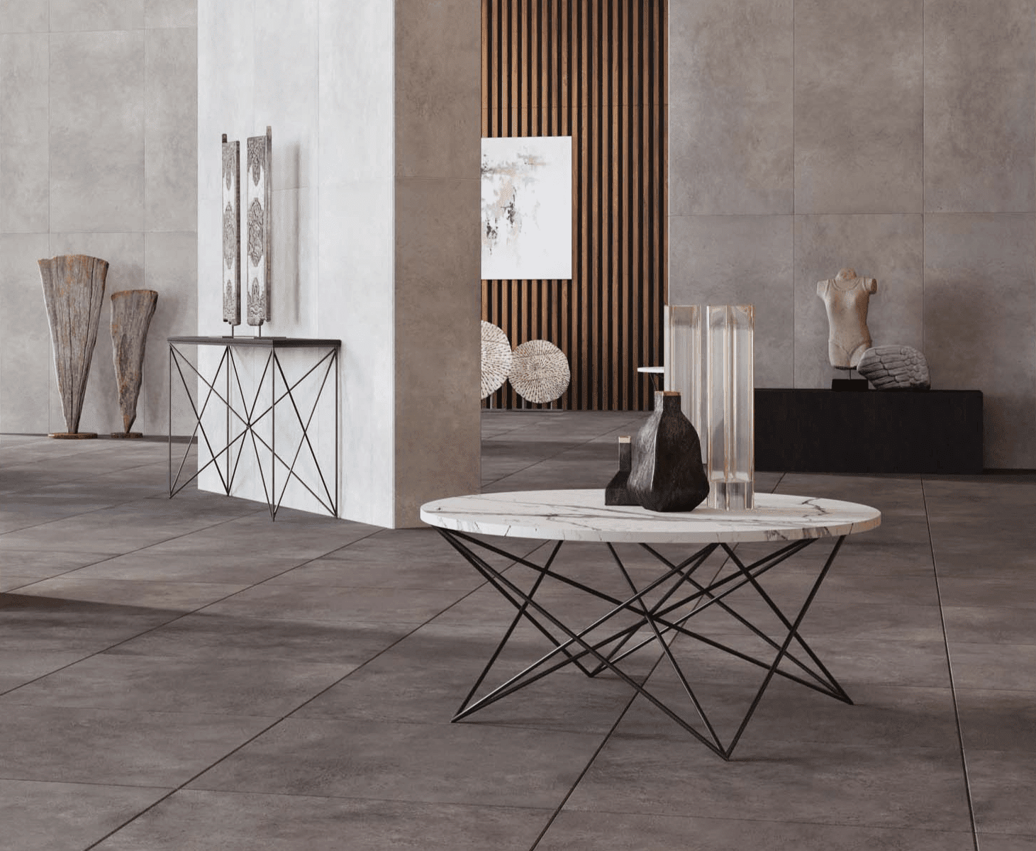 Коллекция Traffic — это эффектный мультиформатный керамогранит, имитирующий бетонную поверхность. Он станет хорошим выбором для интерьеров в стиле лофт, минимализм или хай-тек. Строгий дизайн приобретает особый шарм, благодаря интересной поверхности плит, мелким вкраплениям и текстуре наливного пола.