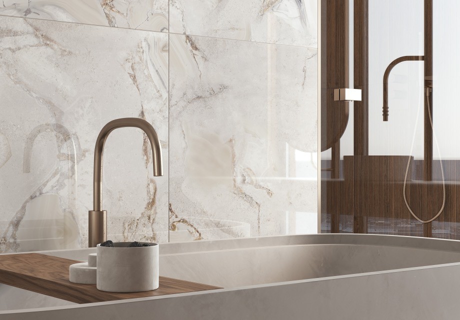 Загадочная коллекция керамогранита Enigma завораживает с первых секунд. Каскадные переливы её ярко-синего оникса смело рассекают чёткие золотистые прожилки. Этот динамичный узор создан для смелых дизайнерских экспериментов. Несмотря на яркие оттенки, материал выглядит натуралистично и ненавязчиво.
